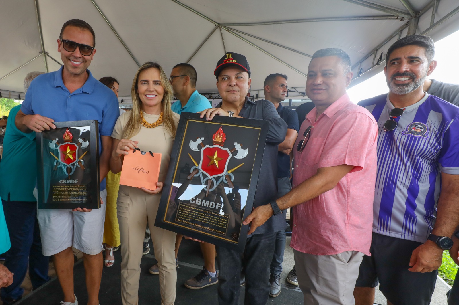 Na ocasião, em agradecimento às ações em benefício aos profissionais do CBMDF, o governador Ibaneis Rocha e a vice-governadora Celina Leão foram homenageados com o título de sócios beneméritos do Clube dos Oficiais do Corpo de Bombeiros Militar do Distrito Federal.