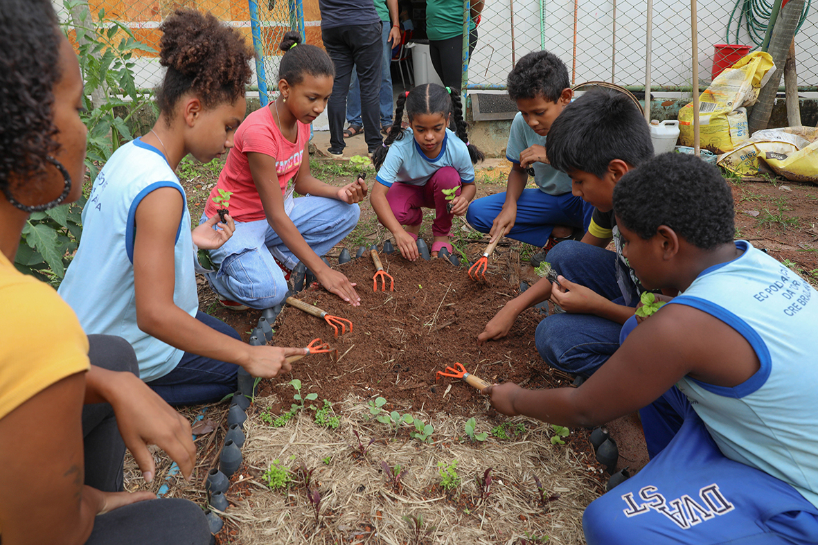 Já Vitória Gomes, 9, destaca que a escola “tem um monte de atividades legais”, mas não esconde a preferência pelas artes visuais, assim como Rafaela Andrades, 11, que exalta a lição sobre os tons de pele. “A gente pinta várias coisas. Na [atividade sobre a] consciência negra, a gente pintou a folha da nossa cor, pintamos bonecos da nossa cor.” Maria Aparecida Mendes, 11, também prefere as aulas de artes, mas revela ter descoberto mais coisas novas na alfabetização ecológica: “Aprendi a plantar”. Tal qual Davi Luiz Dias, 10, que pretende usar os aprendizados para realizar seu sonho. “[Meus pais] falam que é para eu continuar assim que, logo logo, eu vou ser fazendeiro.”