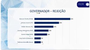 A pesquisa mostra ainda que a deputada federal Adriana Accorsi (PT) é rejeitada por 35% dos eleitores e o senador Wilder Morais (PL) por 27%, ambos impactados pela polarização nacional entre petistas e bolsonaristas. O ex-prefeito de Aparecida de Goiânia Gustavo Mendanha (PSD) tem rejeição de 20% e, por último, os pouco conhecidos Iure Castro (Cidadania) e Telêmaco Brandão (Novo) fecham a lista com 9% cada.