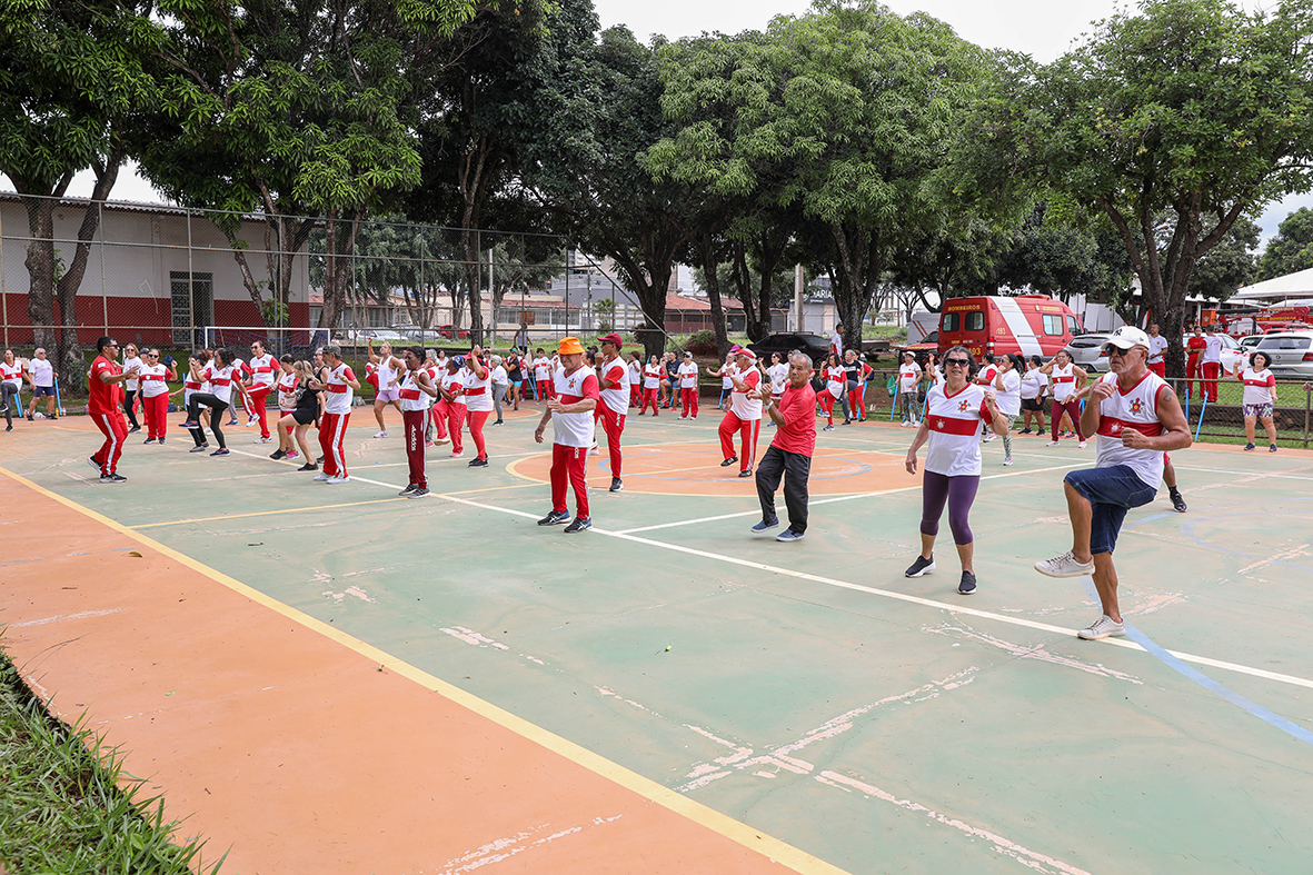 Nos trabalhos desenvolvidos pelo 16º Grupamento de Bombeiro Militar do Gama desde 2012, são cerca de 150 idosos – uma comunidade que esbanja elogios e empolgação pelo espaço, que oferece aulas de ginástica e artesanato, com atividades realizadas nas terças e sextas-feiras, geralmente de 8h às 9h. À frente das aulas na unidade, o sargento Nelson Silva as divide em três partes: o alongamento, em que é trabalhada a flexibilidade, uma parte lúdica com dança e, por fim, um trabalho de força e resistência para a musculatura, feita com levantamento de pequenos pesos improvisados com garrafas pets e areia.