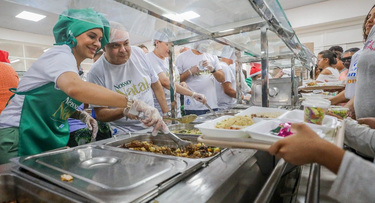 Restaurantes comunitários servem ceia natalina com atrações musicais e Papai Noel