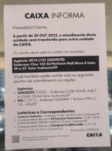 A possível desativação da única agência da Caixa Econômica Federal na região Sudoeste do Distrito Federal tem gerado preocupação entre moradores, especialmente idosos e pessoas com dificuldade de locomoção ou pouco acesso a tecnologias digitais. A comunidade local pede sensibilidade da instituição financeira para rever a decisão e garantir a continuidade do atendimento presencial.