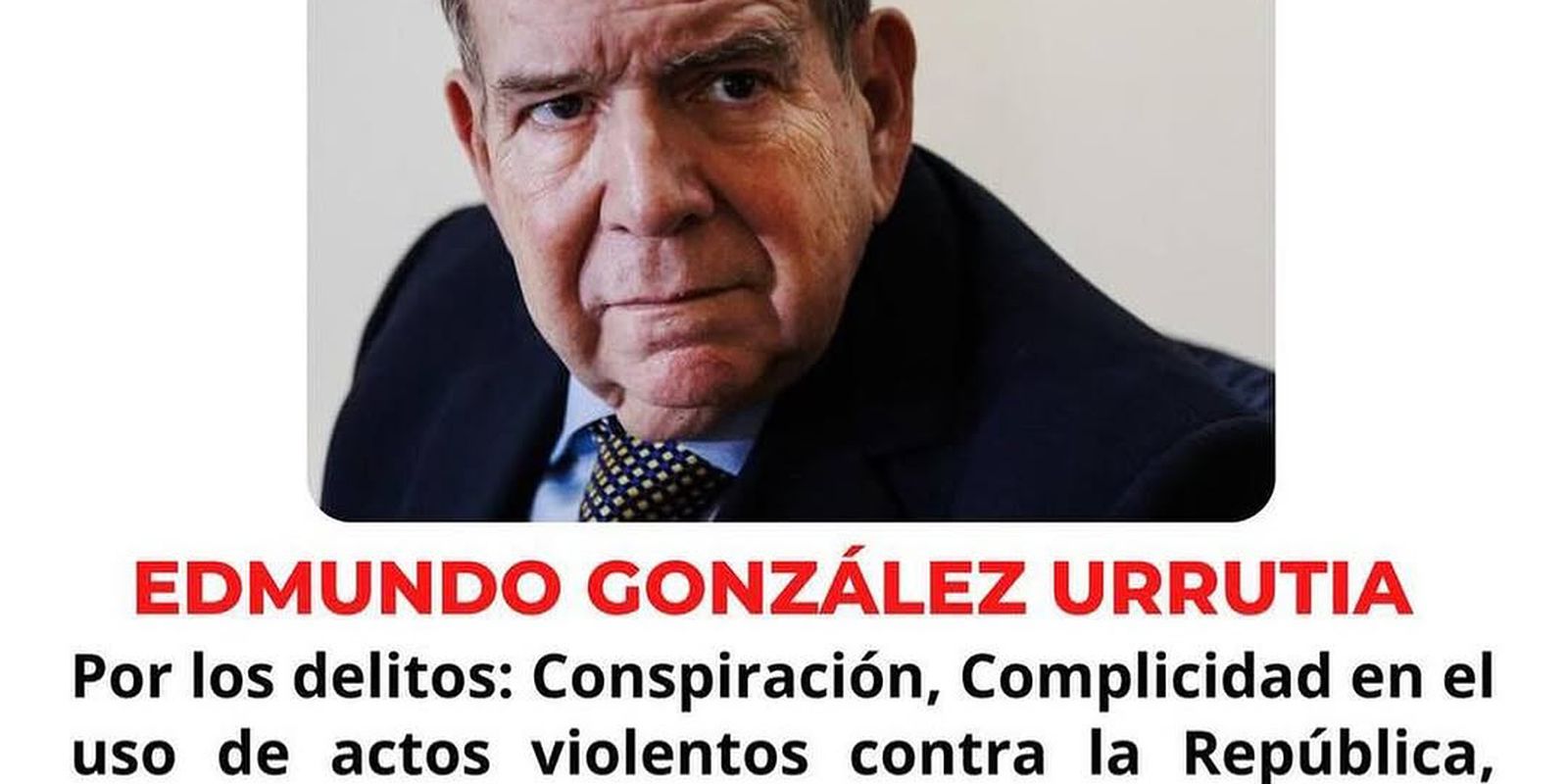 Nesse contexto, o Corpo de Investigações Penais, Científicas e Criminalísticas (CICPC) da Venezuela divulgou, nesta quinta-feira (2), cartazes com a foto de Edmundo anunciado a recompensa por informações que levem a sua prisão. Ele é acusado de crimes como conspiração, cumplicidade por atos de violência contra a República, falsificação de documentos, instigação à desobediência das leis, associação para delinquir, entre outros.
